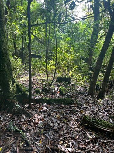 早起きして照葉樹の森に行きました。森の中はひんやりして涼しい時刻でした。 オオアカゲラとゴジュウカラの声が時々響いていました キノコの着いた倒木に日が当たっていました。緑のコケがきれいです。 どんぐりの実。猿の仕業かな。 下は何の実でしょう? …