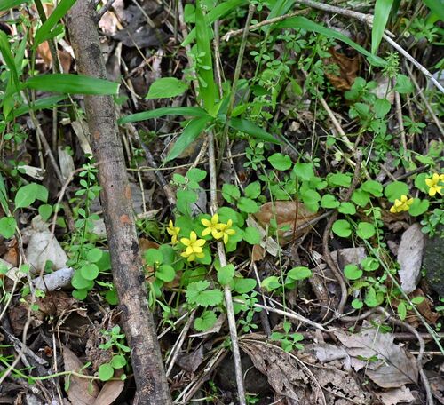宮崎県北部の町に行きました。 深くえぐられた谷を流れる川。その川沿いの森にあった黄色い花。 ミヤマコナスビでした。 葉が二つ並んでいます。 きれいな小さな花でした。